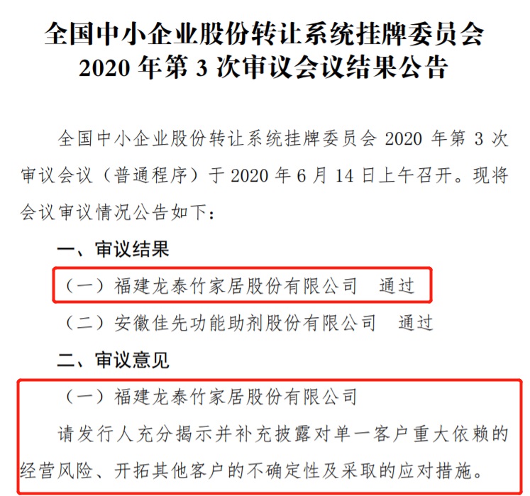 挖贝网6月14日消息,今日,龙泰家居(831445)申报精选层获新三板挂牌委审议通过。