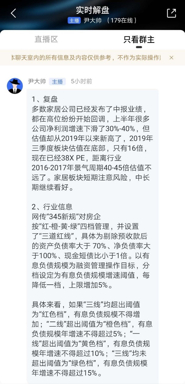 抓不准板块或是个股走势?格隆汇首席“尹大帅”携手众多研究员坐阵【实时解盘】直播间,一天18小时在线为您解盘。欢迎随时寻求答案!