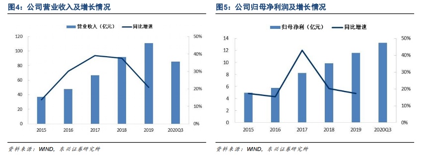 按照区域划分,公司境外营收占比稳步提高,从2017年的35.62%上升至2019年的43.05%。